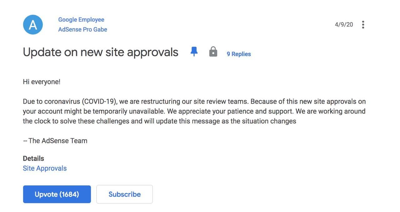 Seems like AdSense team has stopped accepting new application ☹️, due to Covid19 situation.